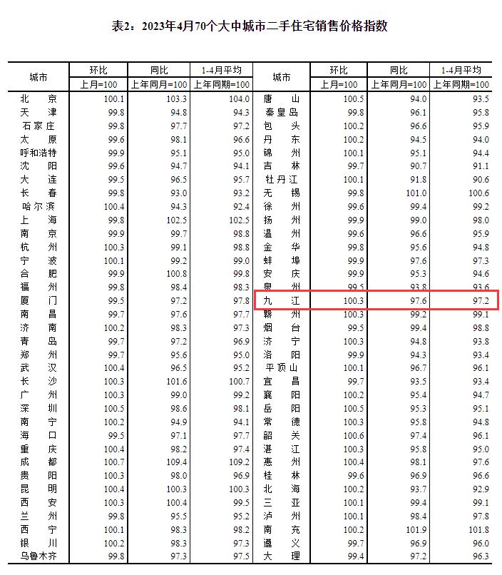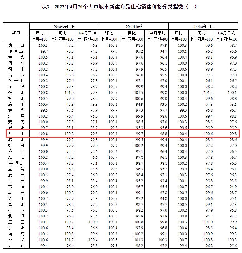 權威數據!4月九江新房售價環比上漲0.4%,二手房售價環比上漲0.3%!70城市商品房售價環比整體漲幅回落!