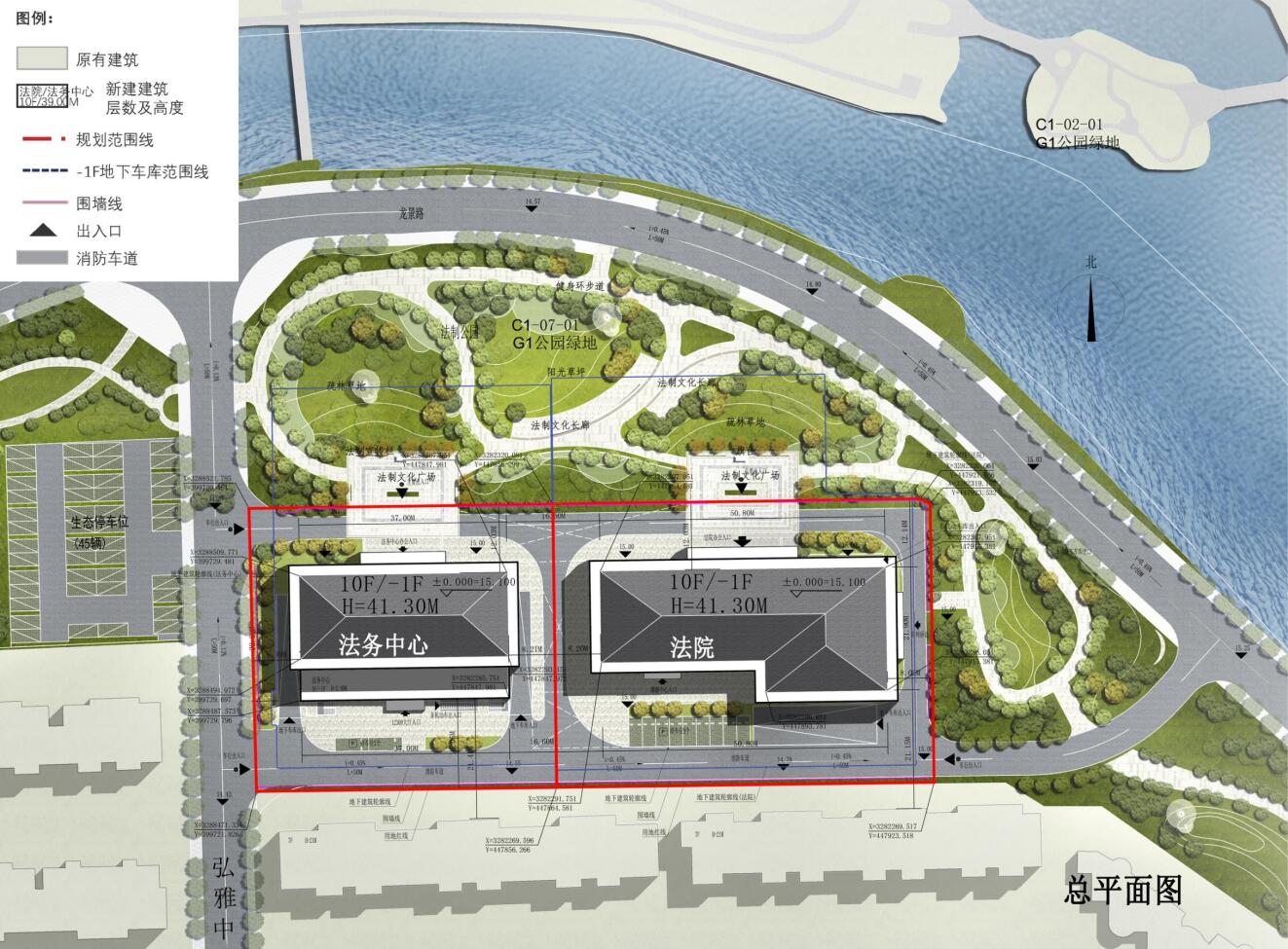 法務中心項目概況:規劃用地面積2716.97㎡,擬建建筑面積9077.39㎡,容積率2.10;